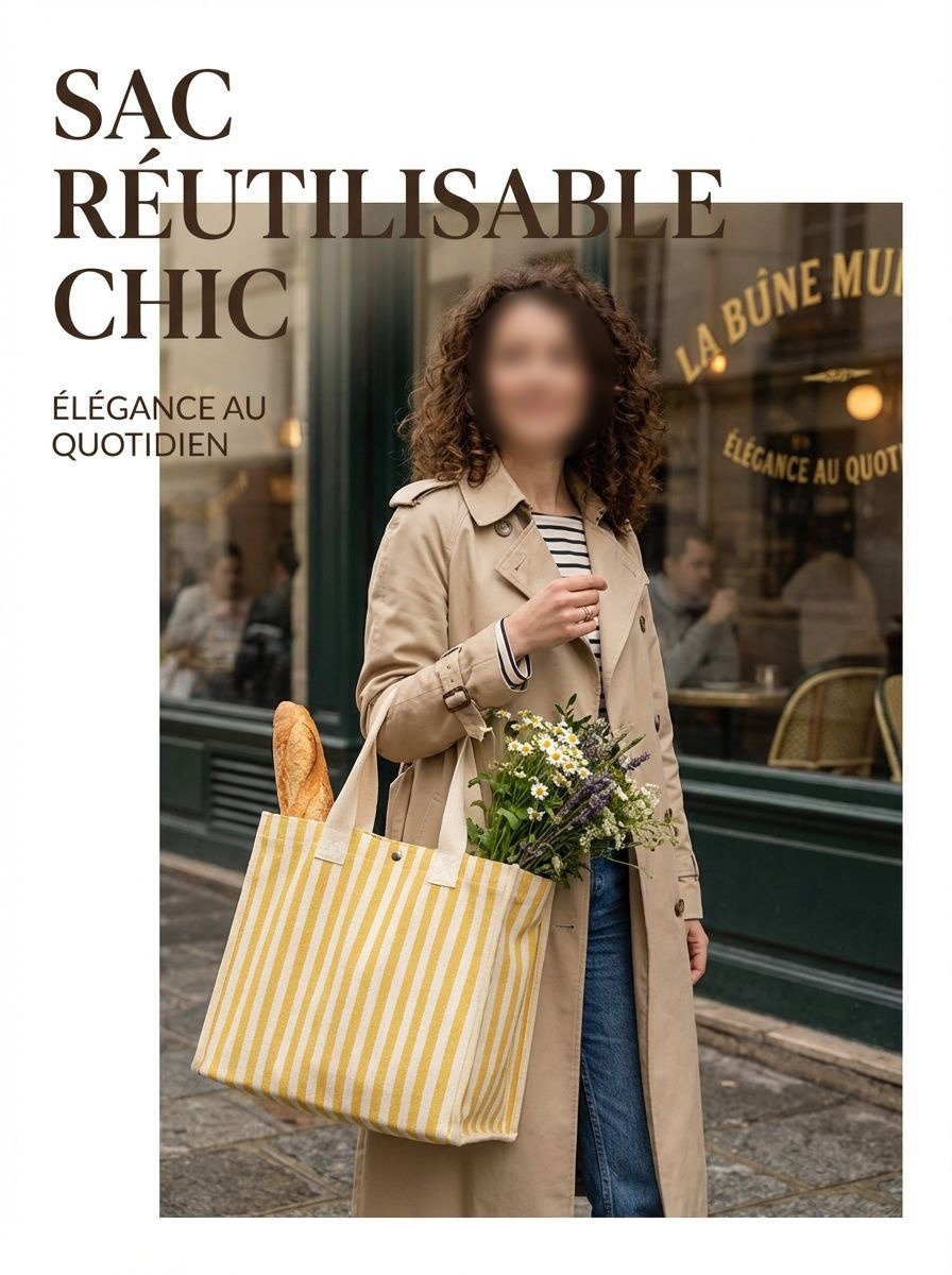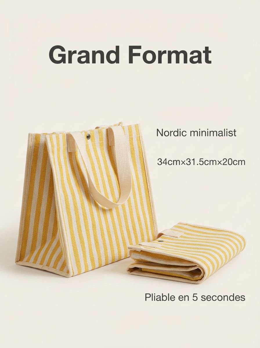 ● Grand sac de courses pliable au style coréen tendance, idéal pour les femmes soucieuses de leur look tout en faisant leurs achats.