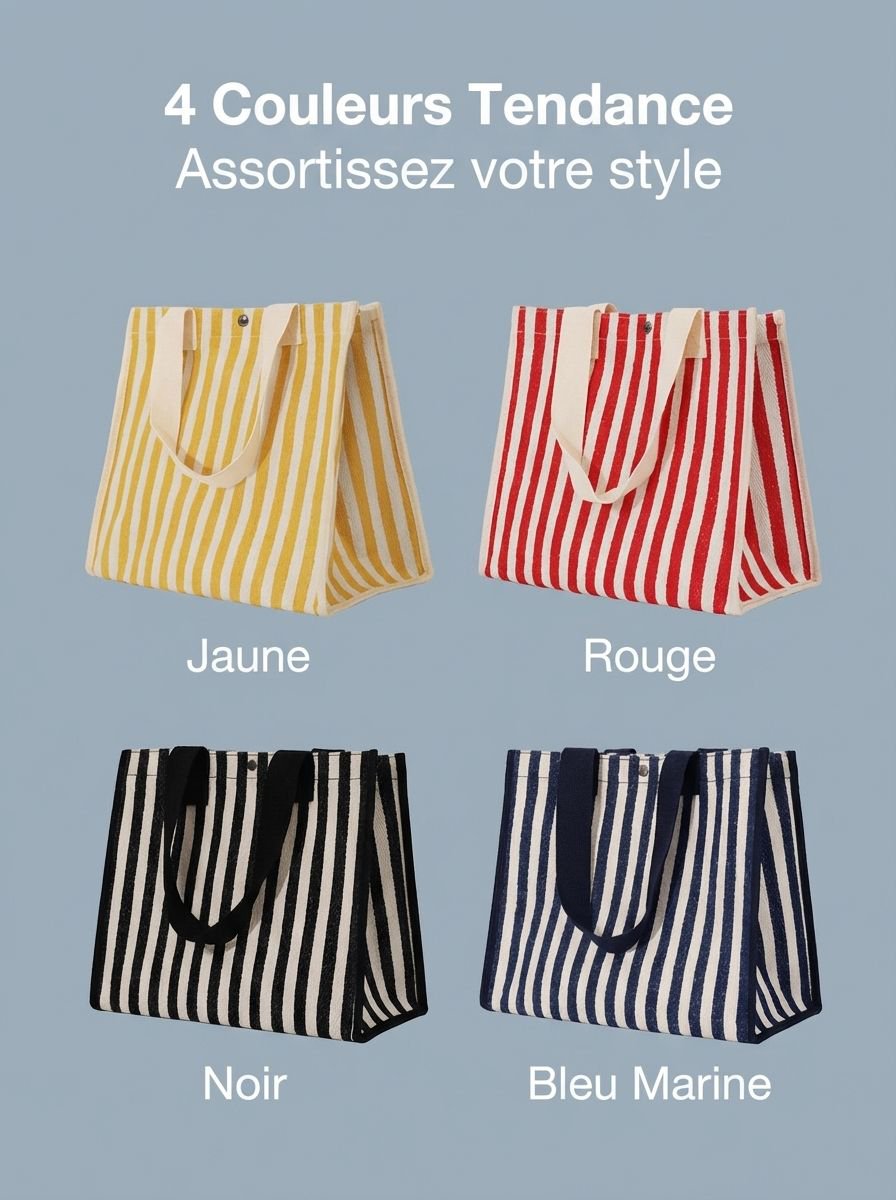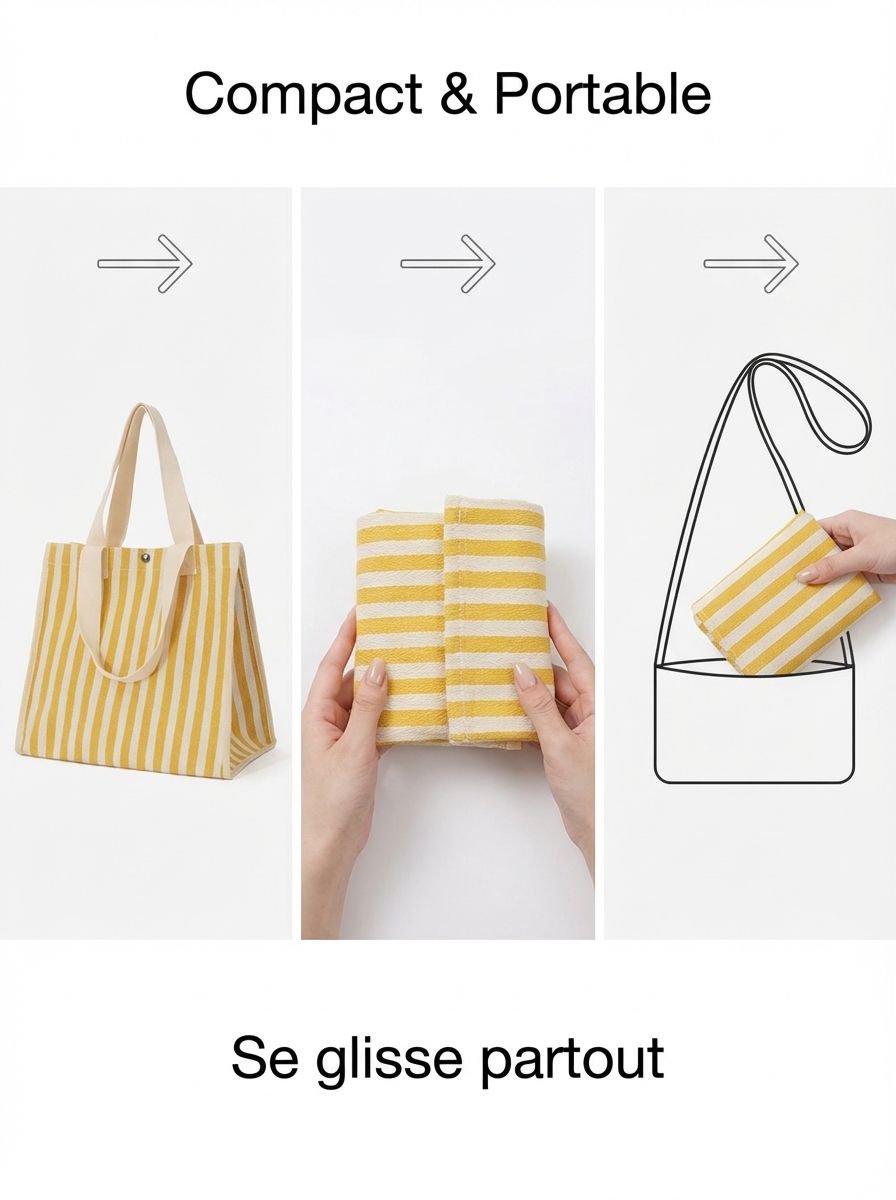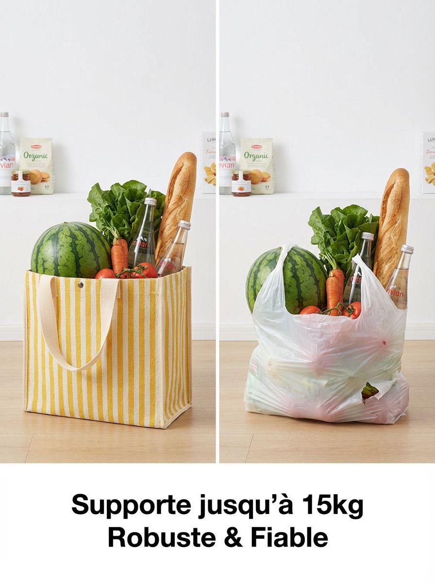 ● Poignées renforcées et coutures solides, garantissant confort et durabilité lors du transport de vos courses ou effets personnels.