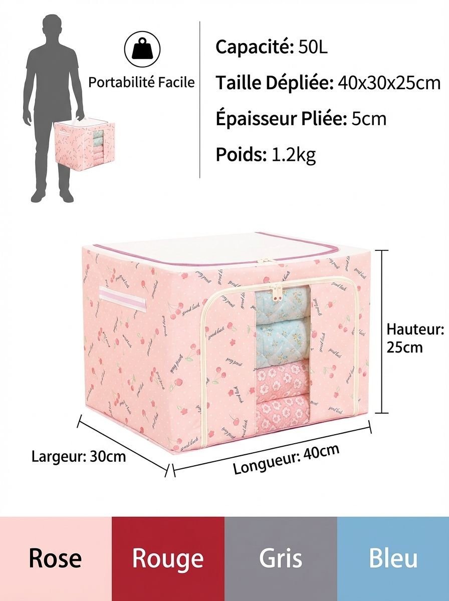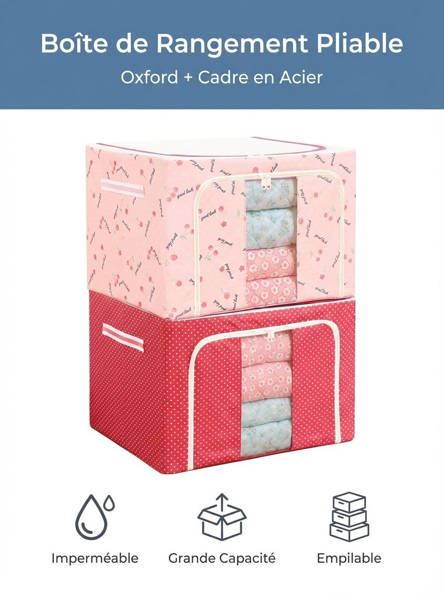 Boîte de rangement pliable en tissu Oxford avec cadre en acier